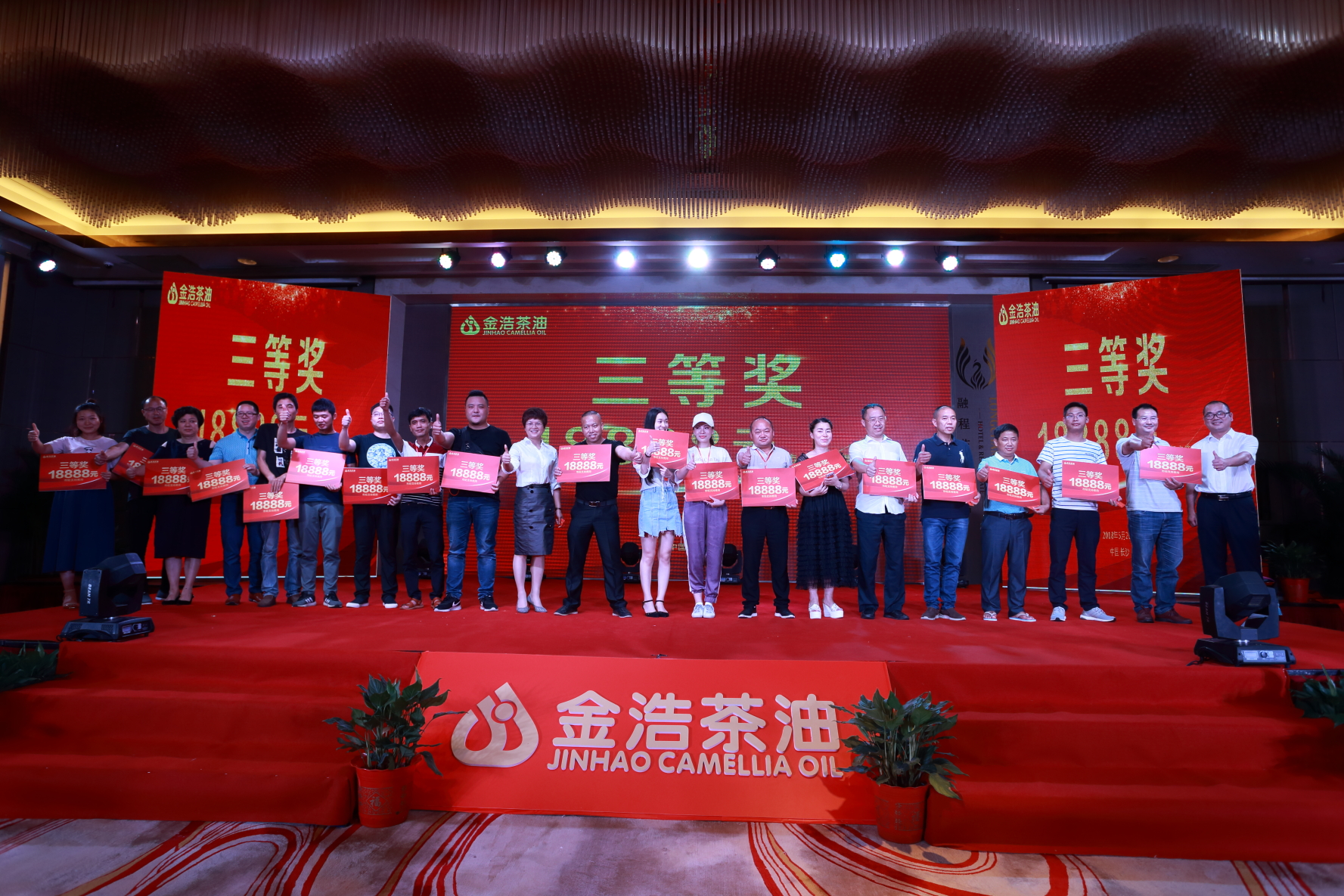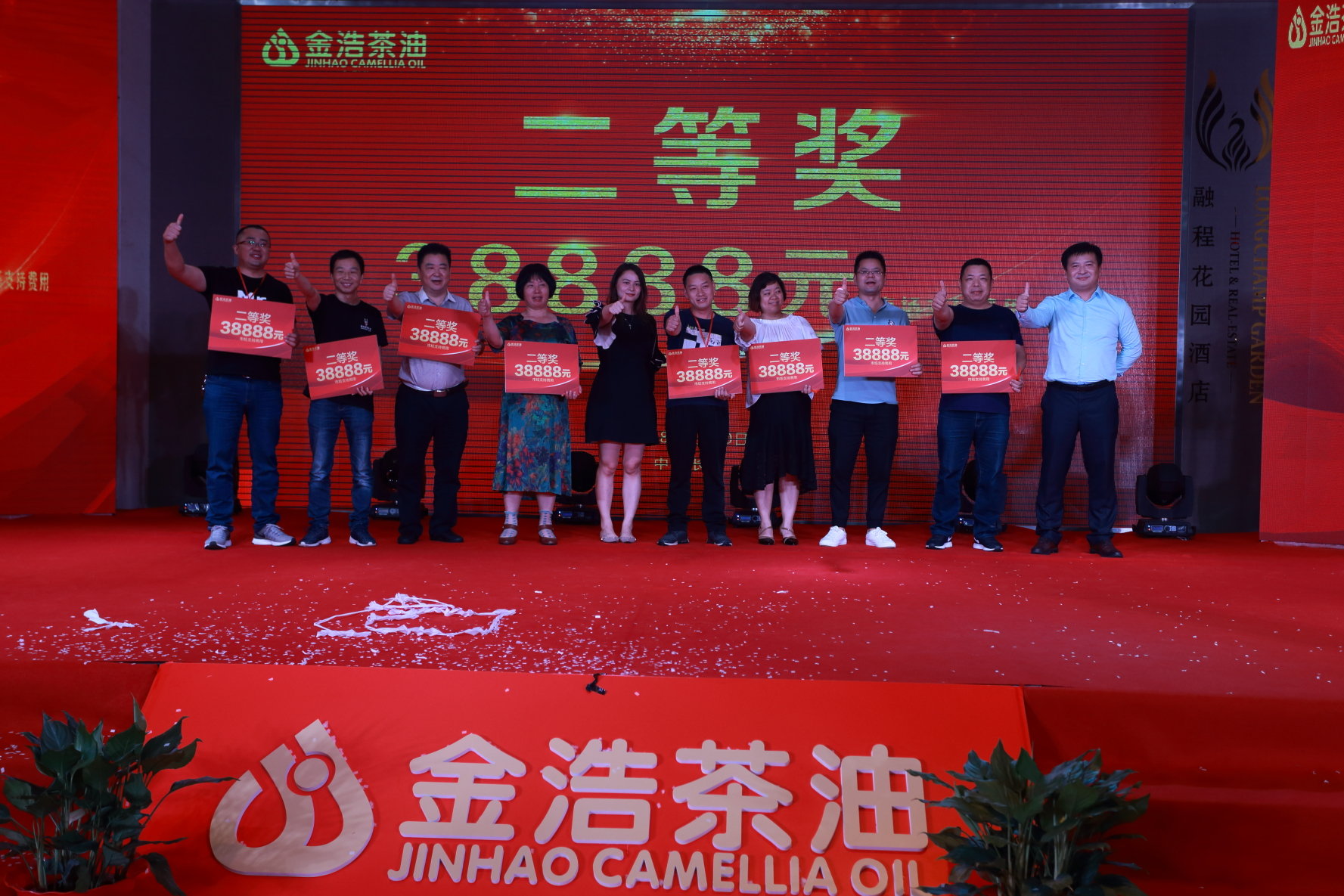 而演出特別設置的抽獎環節更是到達了晚宴的高潮,金浩茶油本著對經銷商們的感激之情,送上了豐厚的獎品,整個晚宴現場氛圍熱烈,其樂融融