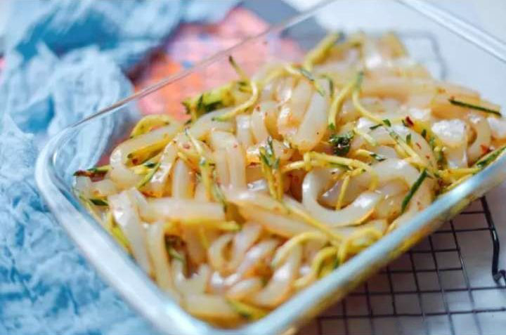 ?雞腿冷水下鍋,加一勺料酒、三片姜,小火煮開,撇去浮沫。 ?水開煮十分鐘,撈出晾涼,撕成條狀,有條件可以用冰水浸一下。 ?黃瓜清洗干凈切成小條,加檸檬片、香菜、蒜末、3勺生抽、2勺醋、1勺蠔油、1勺辣椒油,攪拌均勻。