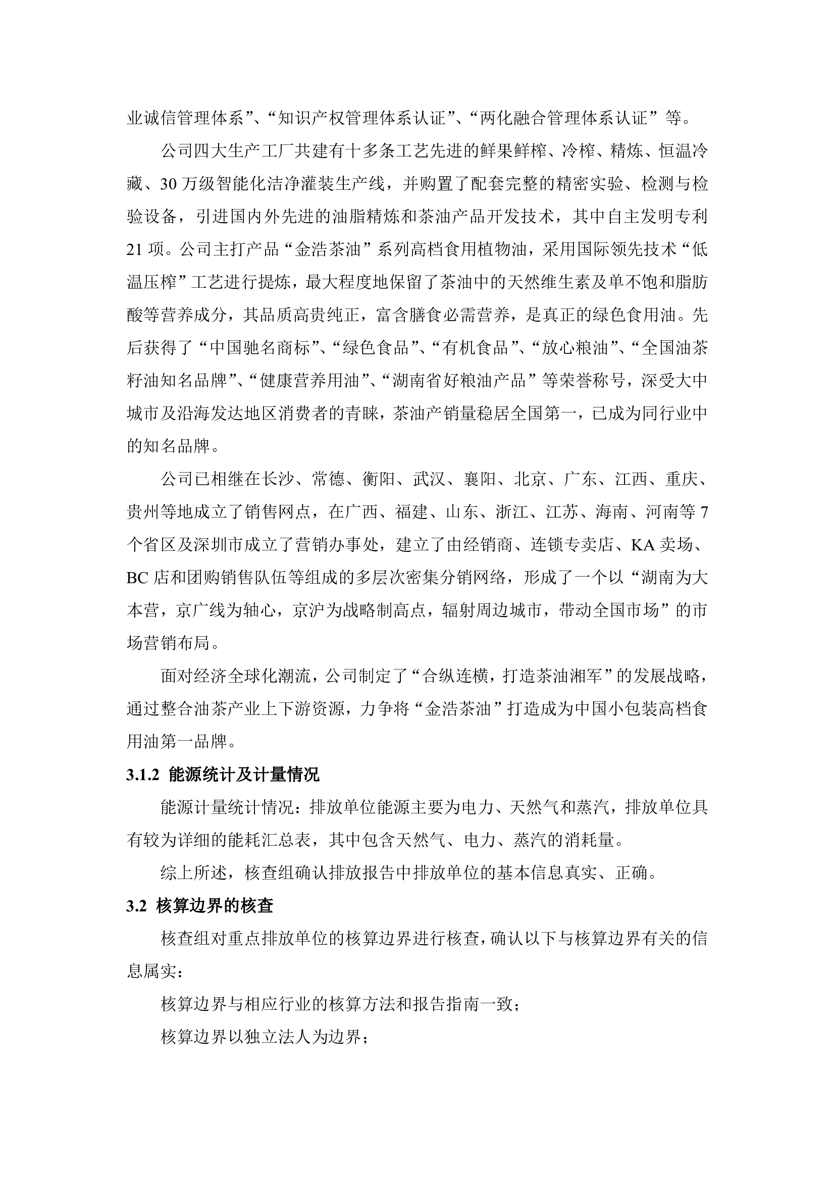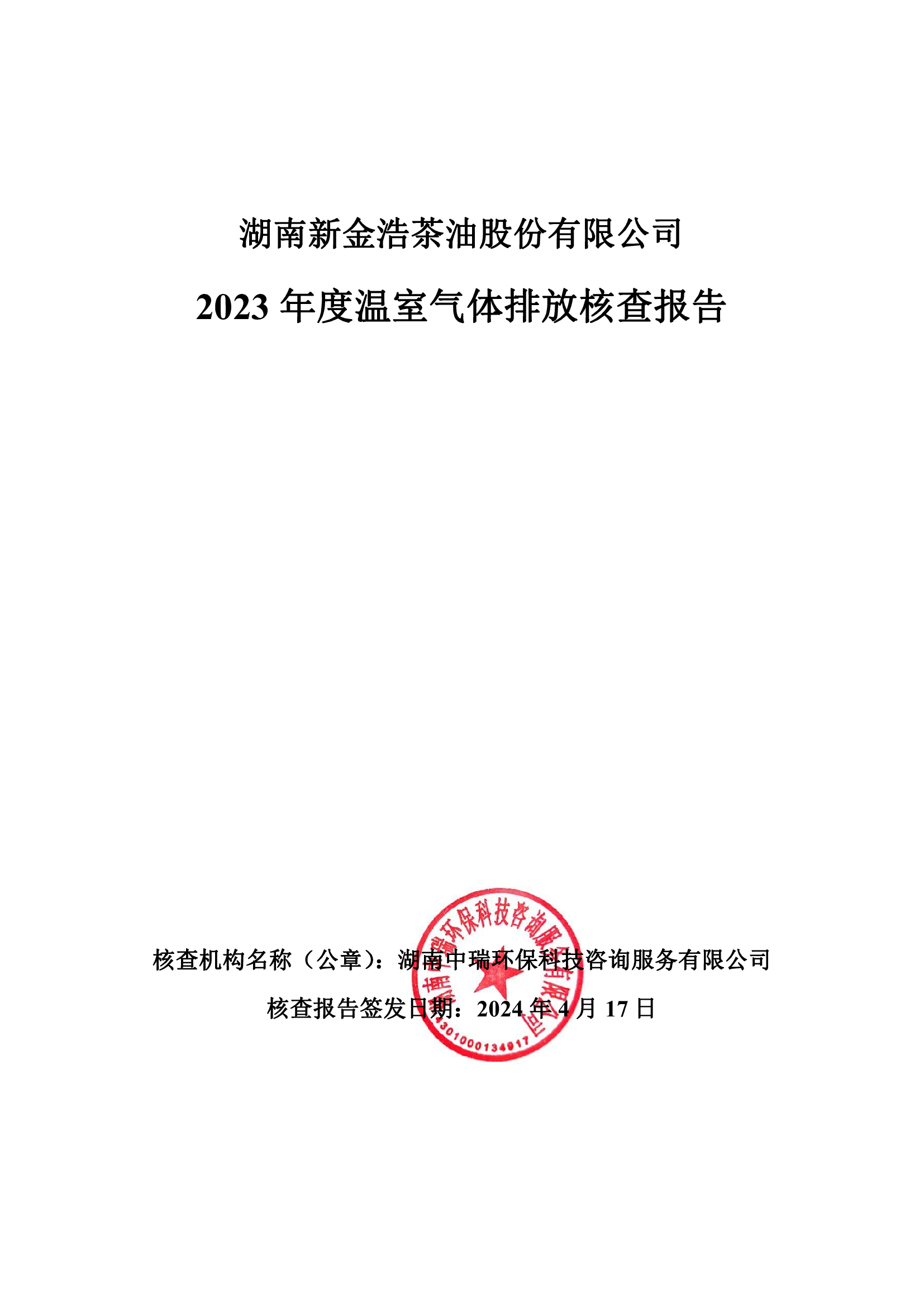 湖南新金浩茶油股份有限公司2023年度溫室氣體排放核查報告。